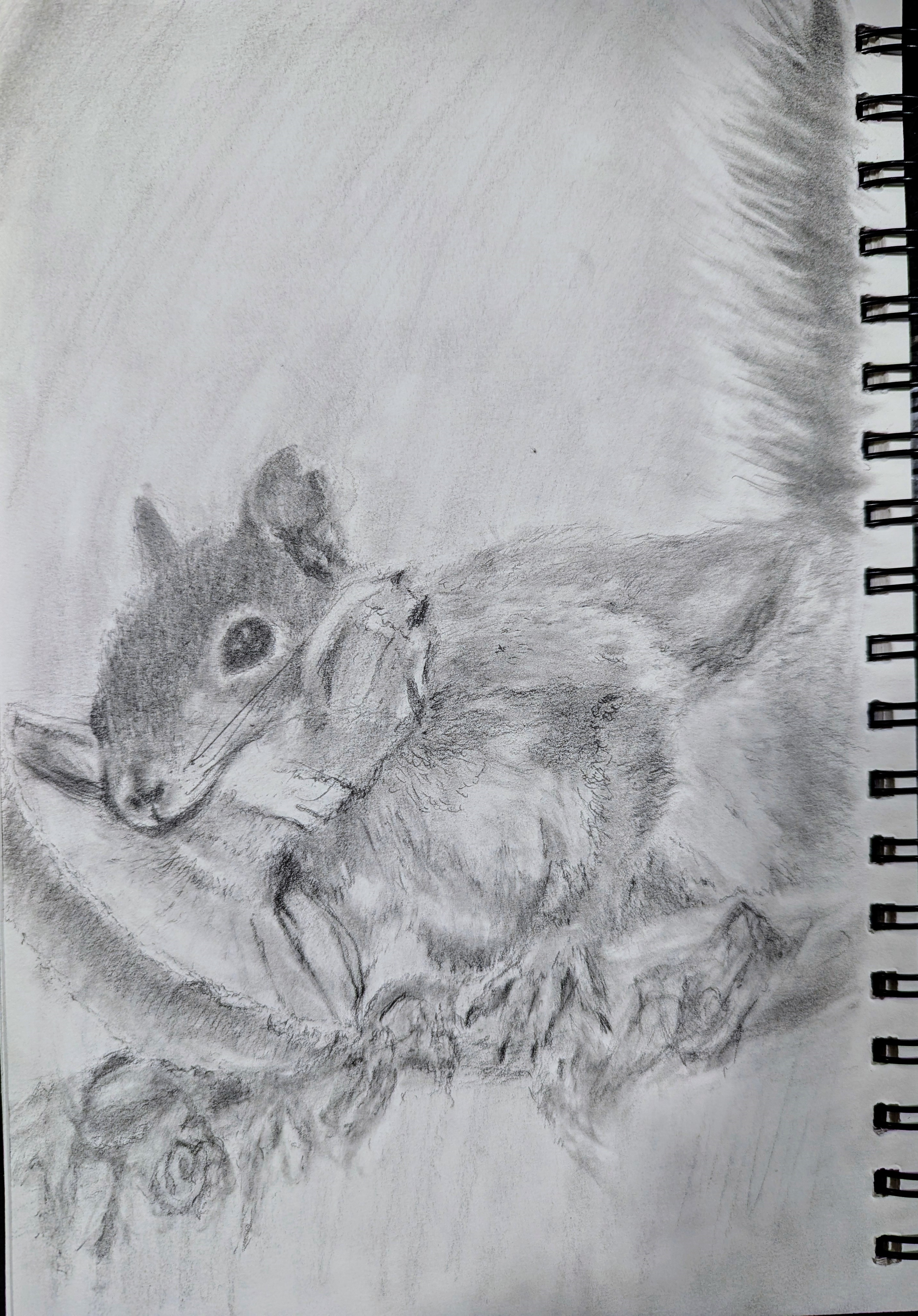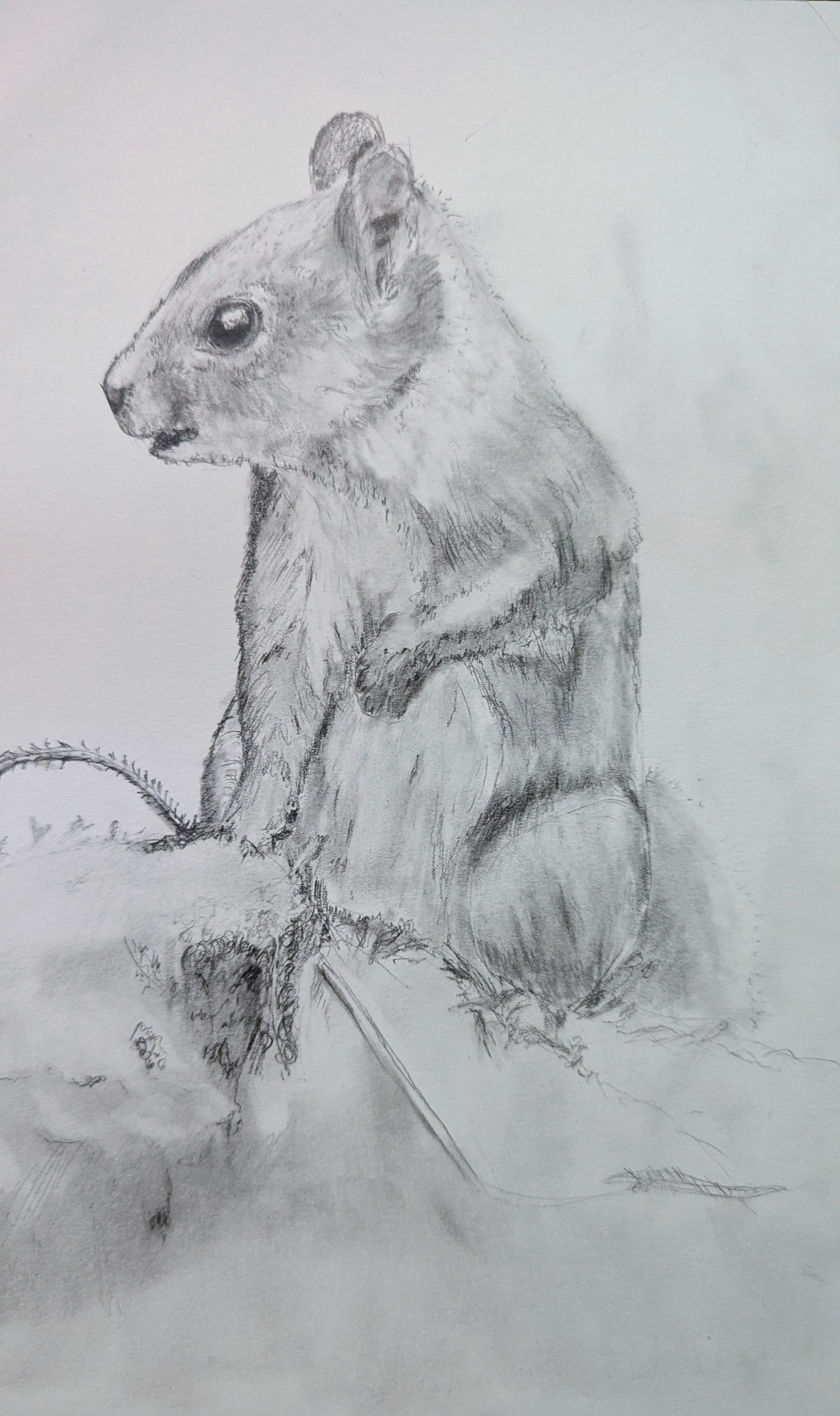 Every artist learns by sketching from life, and I am no exception to this rule. I have become fond of sketching animals, especially squirrels, for their dynamic poses, lovely texture and the challenge of porportion and lighting. Here are some examples of my work: